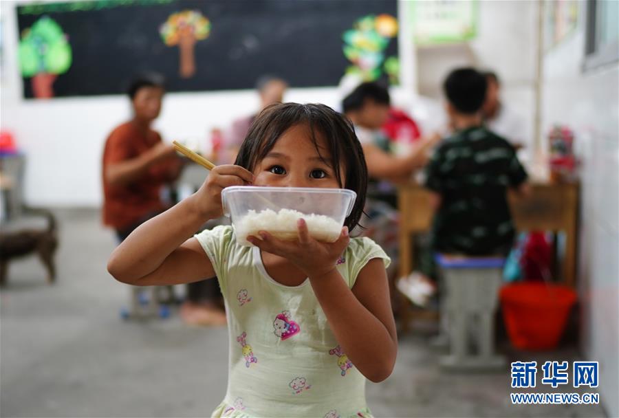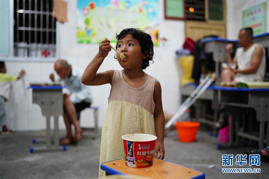 7月9日,小朋友在安置點(diǎn)里吃飯。當(dāng)日,江西鄱陽縣鄱陽鎮(zhèn)因洪水受災(zāi)的村民被轉(zhuǎn)移到多個(gè)集中安置點(diǎn)。在鄱陽縣五一中心學(xué)校安置點(diǎn),志愿者和工作人員接到任務(wù)后不到十小時(shí)內(nèi),為被轉(zhuǎn)移村民布置了28間教室,供519人安頓,并為村民發(fā)放褥子、床單、枕頭、盒飯、飲用水等物資。新華社記者周密攝
