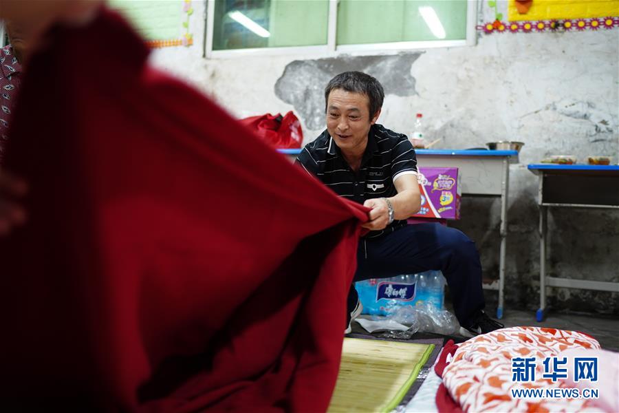 7月9日,在教室安置的村民將剛剛得到的寢具鋪在地上準(zhǔn)備睡覺。當(dāng)日,江西鄱陽縣鄱陽鎮(zhèn)因洪水受災(zāi)的村民被轉(zhuǎn)移到多個(gè)集中安置點(diǎn)。在鄱陽縣五一中心學(xué)校安置點(diǎn),志愿者和工作人員接到任務(wù)后不到十小時(shí)內(nèi),為被轉(zhuǎn)移村民布置了28間教室,供519人安頓,并為村民發(fā)放褥子、床單、枕頭、盒飯、飲用水等物資。新華社記者周密攝