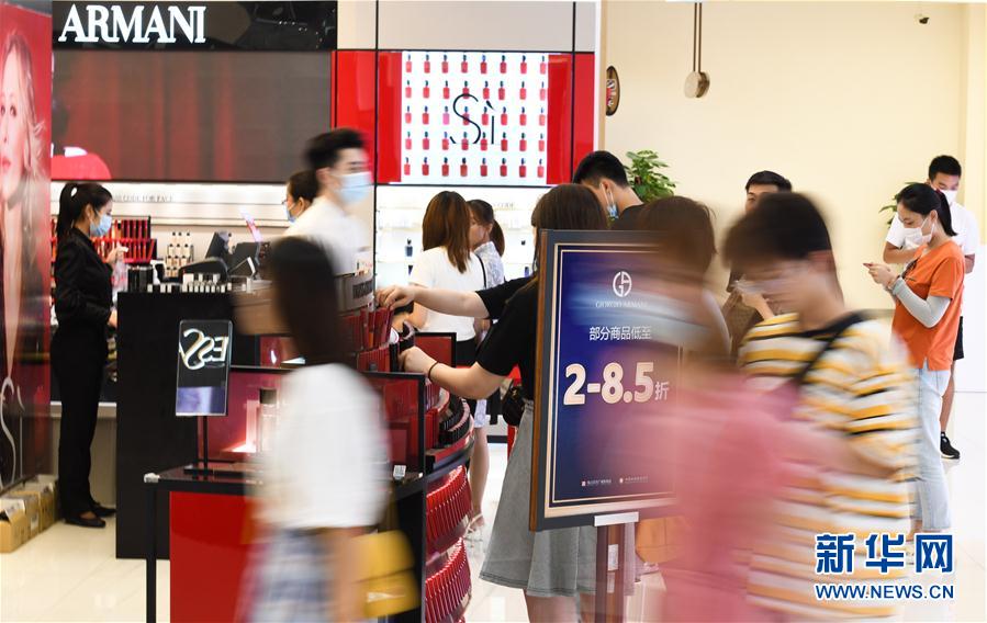 7月12日,游客在??谌赵聫V場(chǎng)免稅店選購(gòu)化妝品。新華社記者 楊冠宇 攝