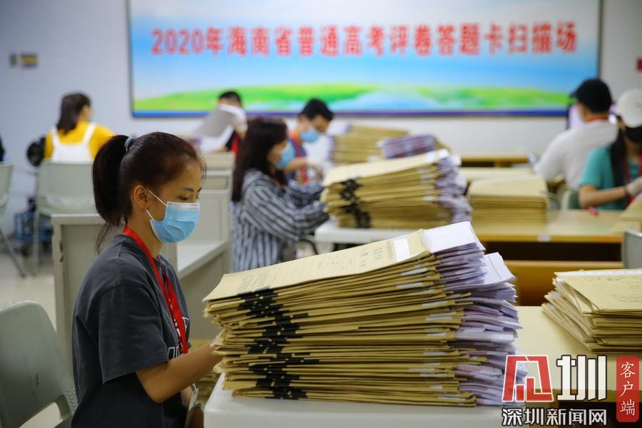2020年7月13日,在海南師范大學(xué)高考評卷場,工作人員仔細拆封考卷并進行掃描入電腦,整個過程井然有序。在評卷現(xiàn)場的入口,除了有武警把守之外,所有工作人員進入到評卷場均有專人使用手柄式金屬探測器對其進行安檢,并通過身份證識別系統(tǒng)中進行身份識別,方可以進入??忌痤}卡由武警24小時值守,并實行嚴密的視頻監(jiān)控。
