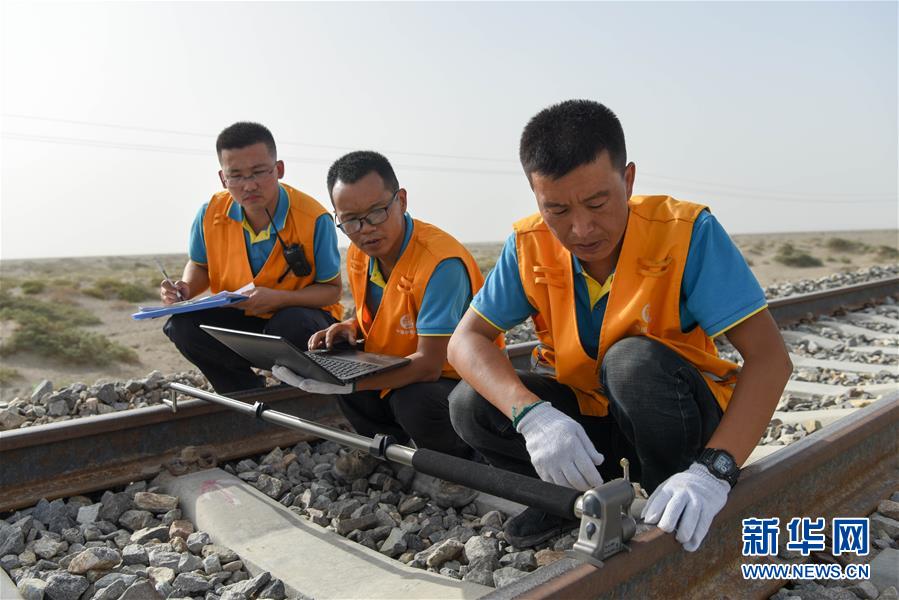 技術(shù)員進(jìn)行鋼軌廓形檢測(cè)(7月14日攝)。新華社記者 丁磊 攝