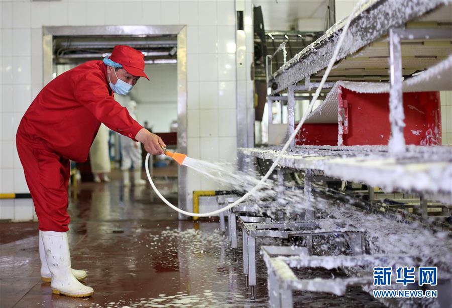 7月14日,北京二商肉類食品集團(tuán)有限公司員工對(duì)肉類分割流水線進(jìn)行清洗消毒。北京二商肉類食品集團(tuán)有限公司是保障北京肉類市場(chǎng)供應(yīng)的主要企業(yè)之一。新冠肺炎疫情以來(lái),企業(yè)嚴(yán)格實(shí)施北京市、農(nóng)業(yè)農(nóng)村部和中國(guó)肉類協(xié)會(huì)的防疫要求,對(duì)進(jìn)入廠區(qū)的人員、車輛以及原料采購(gòu)、屠宰分割、產(chǎn)品加工、貯藏運(yùn)輸、廢棄物收集及污水處理等生產(chǎn)環(huán)節(jié)嚴(yán)格防疫,強(qiáng)調(diào)源頭把關(guān)徹底消毒。目前,集團(tuán)公司下屬多家生豬屠宰加工基地正常運(yùn)營(yíng),保質(zhì)保量供應(yīng)北京市場(chǎng)需求。新華社記者 李欣 攝