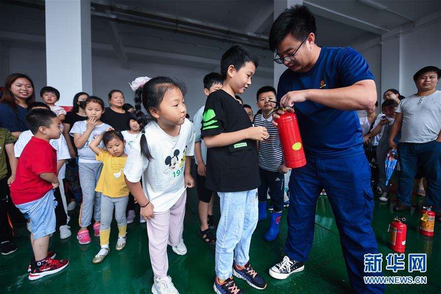 7月16日,東林鎮(zhèn)消防綜合應(yīng)急救援隊(duì)隊(duì)員在給學(xué)生們講解滅火器的使用方法。當(dāng)日,浙江省湖州市吳興區(qū)東林鎮(zhèn)舉辦暑期“安全防護(hù)小超人”主題活動(dòng)?;顒?dòng)由醫(yī)護(hù)人員、消防隊(duì)員等為學(xué)生及家長(zhǎng)講授日常安全避險(xiǎn)及溺水急救知識(shí),中小學(xué)們還在現(xiàn)場(chǎng)學(xué)習(xí)了簡(jiǎn)易包扎、心肺復(fù)蘇的正確方式,并了解滅火器、滅火毯等消防器材的使用,為學(xué)生平安過(guò)暑期打好安全防護(hù)“預(yù)防針”。新華社記者 徐昱 攝