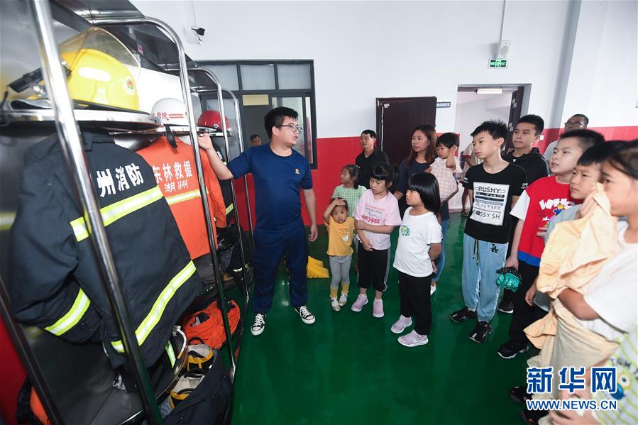 7月16日,東林鎮(zhèn)消防綜合應急救援隊隊員在給學生們介紹消防服及消防器材。當日,浙江省湖州市吳興區(qū)東林鎮(zhèn)舉辦暑期“安全防護小超人”主題活動?;顒佑舍t(yī)護人員、消防隊員等為學生及家長講授日常安全避險及溺水急救知識,中小學們還在現(xiàn)場學習了簡易包扎、心肺復蘇的正確方式,并了解滅火器、滅火毯等消防器材的使用,為學生平安過暑期打好安全防護“預防針”。新華社記者 徐昱 攝