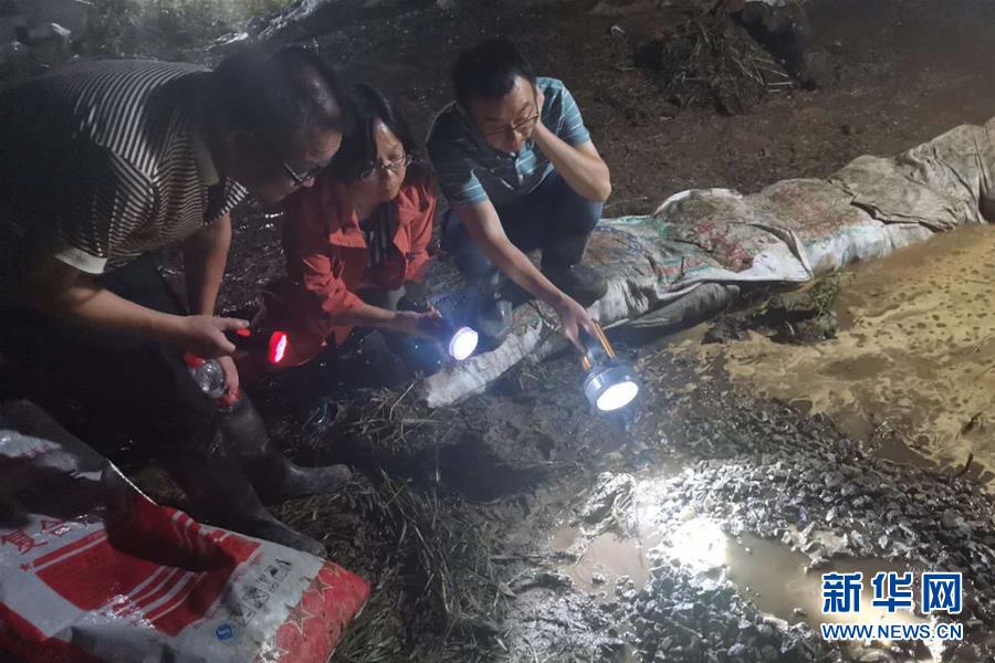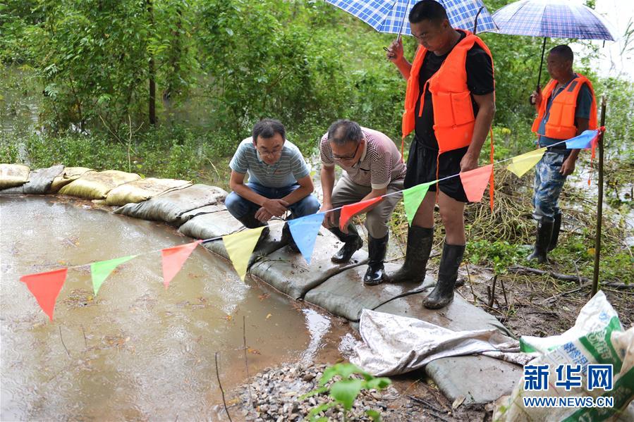 7月13日晚,樅陽縣水利局高級工程師舒曉安(左一)在處置圩堤突發(fā)險(xiǎn)情。受長江持續(xù)高水位影響,安徽省樅陽縣的鐵銅鄉(xiāng)江心洲已于近日將江心洲上的居民轉(zhuǎn)移安置,而包括搶險(xiǎn)隊(duì)員、鄉(xiāng)鎮(zhèn)干部、水利工程師等在內(nèi)的近300人“留守”在江心洲上巡堤查險(xiǎn),守護(hù)家園。鐵銅鄉(xiāng)位于長江江心洲上,有4個行政村52個村民組,耕地面積12000多畝。新華社發(fā)