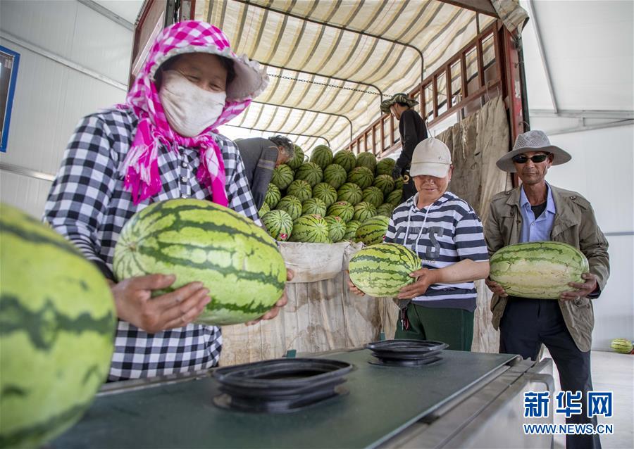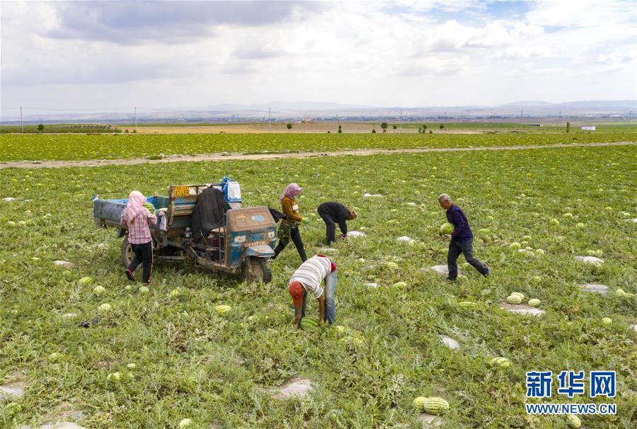 7月16日,在寧夏中衛(wèi)市香山鄉(xiāng)硒砂瓜萬畝示范基地,瓜農(nóng)在采收硒砂瓜。近日,寧夏中衛(wèi)市迎來硒砂瓜豐收季。硒砂瓜是中衛(wèi)市的特色農(nóng)產(chǎn)品,近年來,當?shù)夭扇〖夹g(shù)創(chuàng)新、規(guī)模化種植、休耕輪作等多項舉措,讓硒砂瓜種植成為當?shù)剞r(nóng)民增收致富的重要產(chǎn)業(yè)。據(jù)了解,今年中衛(wèi)市硒砂瓜種植面積為69.7萬畝。新華社記者楊植森攝