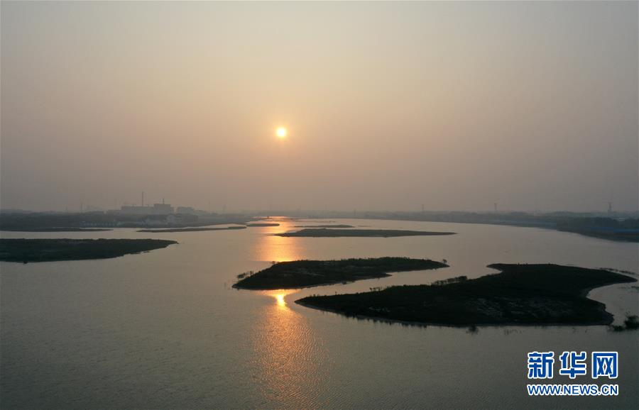 7月17日拍攝的鎮(zhèn)賚環(huán)城國家濕地公園日出景色(無人機(jī)照片)。鎮(zhèn)賚環(huán)城國家濕地公園位于吉林西部,處于松嫩平原草甸草原向內(nèi)蒙古高原典型草原的過渡地帶。濕地公園總面積2785.29公頃,廣闊的水域以及多種植被和濕地類型,為眾多鳥類提供了充足的食物來源和良好的棲息環(huán)境。據(jù)統(tǒng)計,濕地公園內(nèi)現(xiàn)有鳥類112種,其中國家Ⅰ級保護(hù)鳥類7種,國家Ⅱ級保護(hù)鳥類30種。新華社記者林宏攝