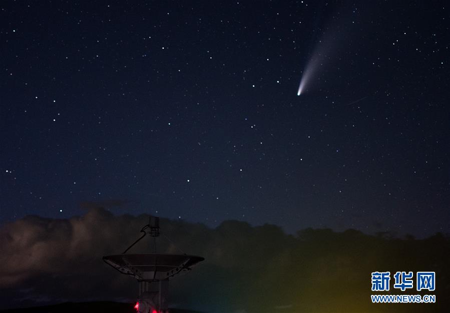 7月18日晚,在明安圖觀測基地,尼歐懷茲彗星劃過天際。7月18日晚至19日凌晨,在位于內(nèi)蒙古錫林郭勒盟正鑲白旗境內(nèi)的國家天文臺(tái)明安圖觀測基地,尼歐懷茲彗星劃過天際。在明安圖觀測基地內(nèi),排列著100面白色的拋物面天線。這個(gè)龐大的天線陣列便是草原“天眼”——明安圖射電頻譜日像儀。草原“天眼”持續(xù)接收太陽射電輻射,然后由科研人員進(jìn)行數(shù)據(jù)分析研究,對(duì)空間環(huán)境監(jiān)測、太陽活動(dòng)預(yù)報(bào)均有重要作用。新華社記者連振攝