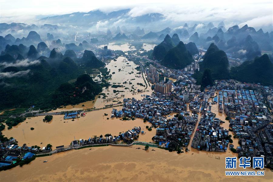 7月11日在廣西柳州市融水苗族自治縣拍攝的融江(無人機照片)。受連日強降雨影響,廣西柳州市融水苗族自治縣融江出現(xiàn)超警戒水位。新華社記者黃孝邦攝
