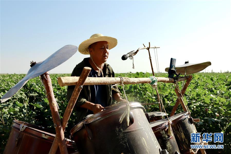 在新疆瑪納斯縣的棉田里,張宏遠(yuǎn)在錄制短視頻(7月14日攝)。新華社記者孫哲攝