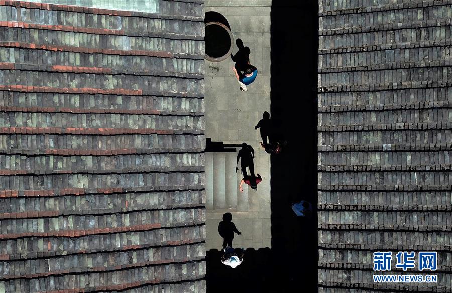 7月19日,游客們在永泰縣同安鎮(zhèn)愛荊莊里觀賞游玩(無人機照片)。近年來,福建省福州市永泰縣重視古莊寨保護與利用工作,遵循“保護為主、修舊如舊”原則,加大修繕保護力度,通過對古莊寨古村落等物質載體進行活化利用,打造莊寨+旅游、莊寨+研學等產業(yè)發(fā)展模式,帶動鄉(xiāng)村振興。永泰縣地處福州西南部,擁有保存較好的古莊寨152座,面積1000平方米以上、年代100年以上98座。新華社記者魏培全攝
