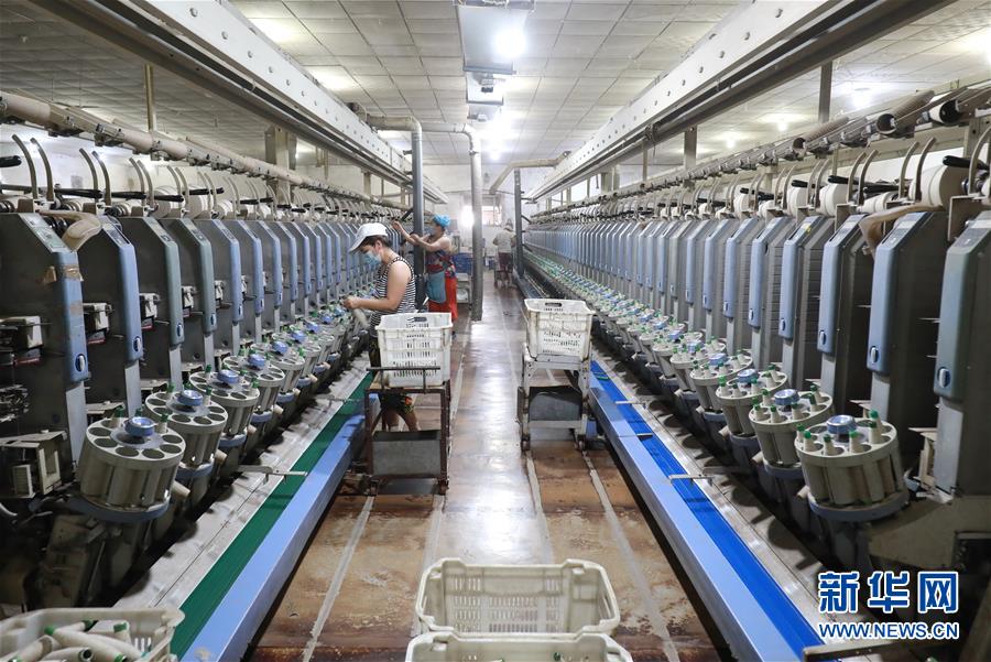 7月20日,工人在灤南縣長凝鎮(zhèn)的一家紡織廠生產(chǎn)車間里工作。近年來,河北省灤南縣大力發(fā)展村邊民營企業(yè),引導(dǎo)企業(yè)在鄉(xiāng)鎮(zhèn)村邊建廠,帶動當(dāng)?shù)?萬多名農(nóng)村群眾在村邊就近就業(yè),實(shí)現(xiàn)穩(wěn)步增收。新華社記者楊世堯攝