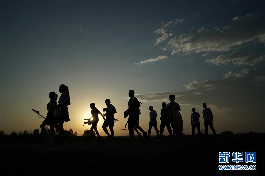 2019年8月15日,《向陽(yáng)而生》攝制組完成一天的拍攝,行走在返回學(xué)校的途中。新華社記者牟宇攝