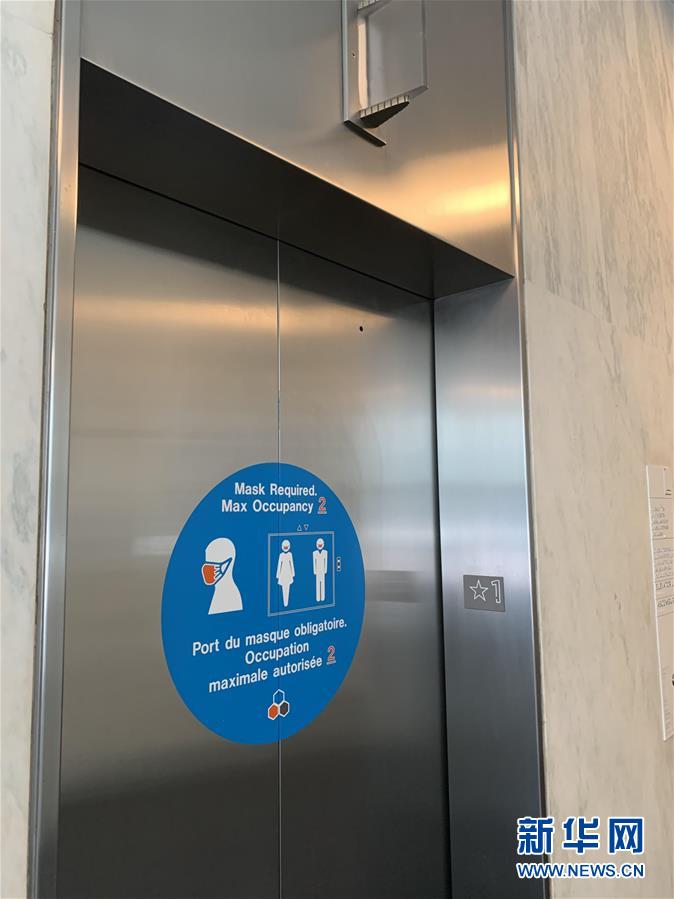 7月20日,在位于紐約的聯(lián)合國總部,電梯門上張貼著要求人們在公共場所佩戴口罩等標識。受新冠疫情影響而實行遠程辦公4個多月的紐約聯(lián)合國總部20日進入重啟第一階段。按規(guī)定,該階段每天進入總部大樓人數(shù)不能超過400人。新華社記者王建剛攝
