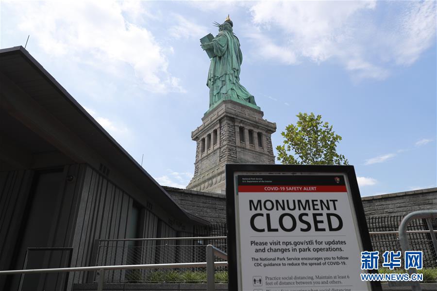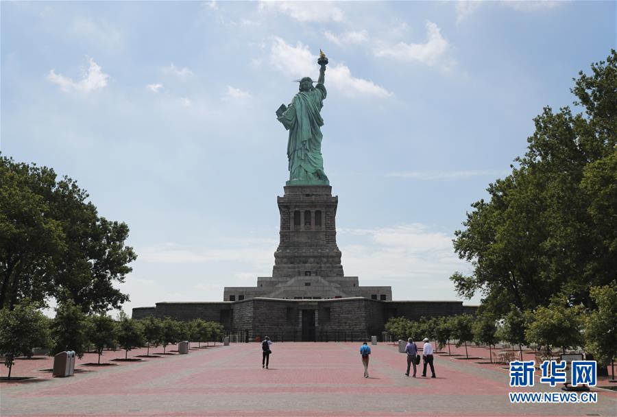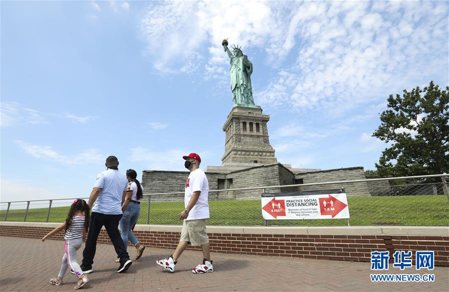 7月20日,參觀者在美國紐約自由島游覽。美國紐約市20日繼續(xù)推進經濟重啟計劃,宣布開始進入解封新階段,進一步允許部分低風險文娛活動重啟。自由女神像所在的自由島對公眾開放,但雕像內部和博物館仍關閉。新華社記者王迎攝