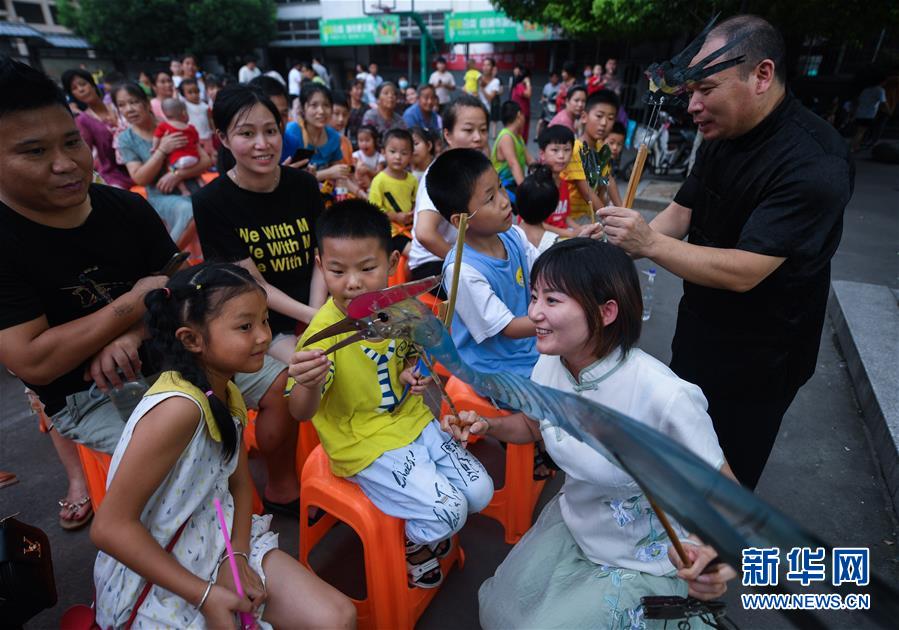 當(dāng)日,浙江省杭州市余杭區(qū)塘棲鎮(zhèn)河西埭村“衛(wèi)家班皮影戲”劇團(tuán)的藝人們來(lái)到余杭區(qū)喬司街道和睦橋村進(jìn)行演出,這是近期杭州市余杭區(qū)夏季鄉(xiāng)村“文化走親”的重要活動(dòng)之一。今年6月開(kāi)始,杭州市余杭區(qū)塘棲鎮(zhèn)組織多支文化表演團(tuán)體以“文化走親”的形式,先后送戲到余杭區(qū)近20個(gè)鄉(xiāng)村文化禮堂,豐富夏日鄉(xiāng)村百姓文化生活。在余杭塘棲一帶,歷史上曾活躍著一支以演出皮影戲出名的民間戲班子,號(hào)稱(chēng)“衛(wèi)家班”。2016年,塘棲鎮(zhèn)河西埭村在文化禮堂的建設(shè)過(guò)程中,將當(dāng)?shù)貍鹘y(tǒng)的“衛(wèi)家班皮影戲”作為“一村一品”特色項(xiàng)目進(jìn)行了搶救性保護(hù)。2018年12月,“衛(wèi)家班皮影戲”被列入杭州市非物質(zhì)文化遺產(chǎn)代表性項(xiàng)目名錄。新華社記者徐昱攝