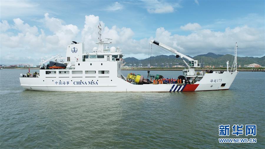 “海巡173輪”在試航(資料圖片,無(wú)人機(jī)照片)?!昂Q?73輪”7月22日正式列編交通運(yùn)輸部南海航海保障中心廣州航標(biāo)處。這艘排水量2228噸的大型航標(biāo)工作船是中國(guó)交通運(yùn)輸系統(tǒng)南海海區(qū)裝備最先進(jìn)的船,將用于粵港澳大灣區(qū)和南海海區(qū)水上浮標(biāo)的布設(shè)和維護(hù)。新華社發(fā)