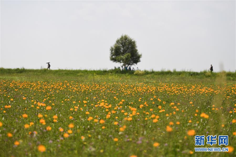 這是7月22日拍攝的金蓮川草原。金蓮川草原位于內(nèi)蒙古自治區(qū)錫林郭勒盟正藍(lán)旗,正值盛夏,金蓮川草原上鮮花綻放,景色宜人。新華社記者劉磊攝