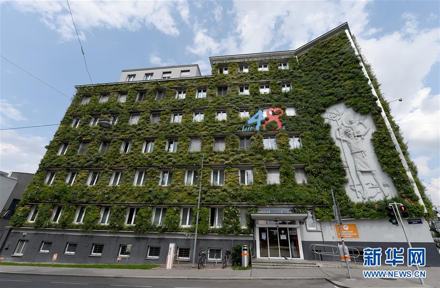 這是7月22日拍攝的奧地利維也納市政管理局廢物處理辦公總部(MA48)外部一隅。奧地利首都維也納的市政管理局廢物處理辦公總部的外墻被種植的綠色植物覆蓋,成為了維也納市建設(shè)綠色城市、節(jié)能減排的“示例樓”。據(jù)介紹,這個外墻項目建立于2010年,每年在夏季為該建筑自然降溫、增加濕度,從而減少空調(diào)的使用,并可吸收二氧化碳。維也納市政府提倡市內(nèi)建筑建設(shè)綠色外墻,并提供資金支持。新華社記者郭晨攝