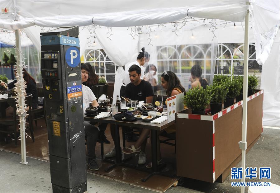 7月23日,在美國紐約,人們在戶外就餐區(qū)用餐。美國約翰斯·霍普金斯大學(xué)23日發(fā)布的新冠疫情最新統(tǒng)計(jì)數(shù)據(jù)顯示,美國累計(jì)確診病例超過400萬例。數(shù)據(jù)顯示,截至美國東部時間23日15時34分(北京時間24日3時34分),美國累計(jì)確診病例4007859例,累計(jì)死亡病例143846例。新華社記者王迎攝