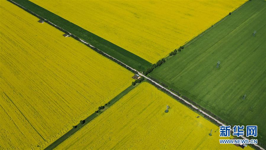 這是7月22日拍攝的門(mén)源回族自治縣境內(nèi)的油菜花田(無(wú)人機(jī)照片)。新華社記者 吳剛 攝