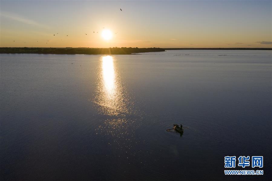 7月24日,漁民在大力加湖中捕魚(無人機(jī)照片)。大力加湖位于“中國東極”黑龍江省撫遠(yuǎn)市,面積28.5平方公里,兩岸地勢低平,多濕地、草原,湖內(nèi)水產(chǎn)豐富。夏日傍晚時(shí)分,漁民捕魚歸來,美麗畫卷映入眼簾。新華社記者謝劍飛攝