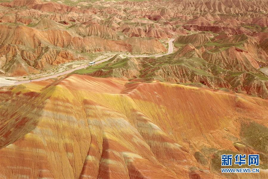 這是7月26日拍攝的張掖世界地質(zhì)公園七彩丹霞景區(qū)景觀(無人機照片)。新華社記者 范培珅 攝