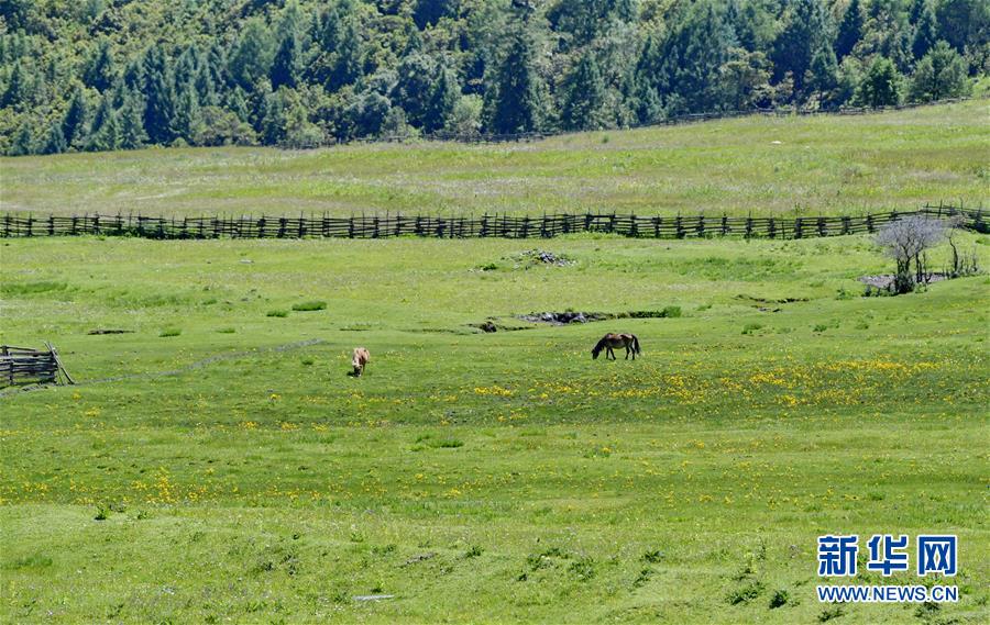 魯朗旅游小鎮(zhèn)的牧場(chǎng)(7月26日攝)。新華社記者 張汝鋒 攝