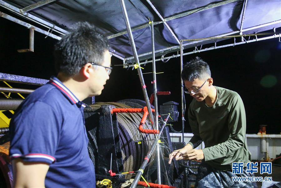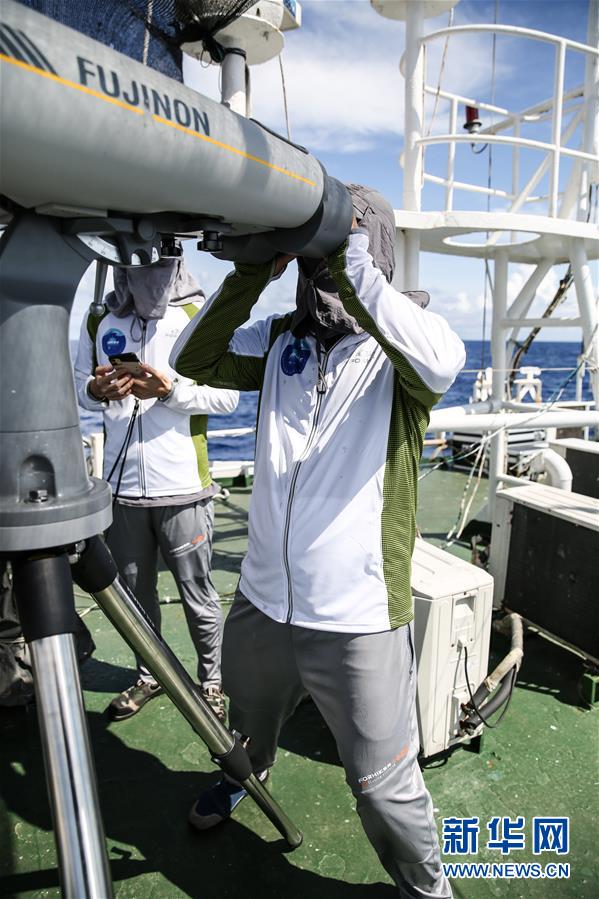 7月11日,科研人員在科考船上觀察動(dòng)物。新華社記者張麗蕓攝