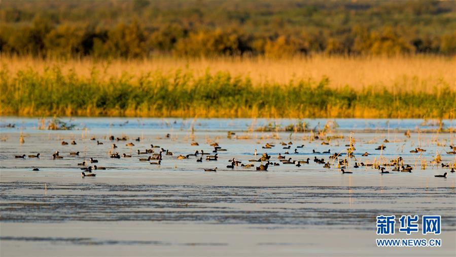 7月28日,成群候鳥在桃力廟—阿拉善灣海子覓食。鄂爾多斯?jié)竦匚挥趲觳箭R沙漠、毛烏素沙地接壤地帶,2002年被列入國際重要濕地名錄。從2006年開始,由于濕地湖面萎縮、湖心島消失,在此筑巢繁殖的世界瀕危物種遺鷗幾近消失。近年來,當(dāng)?shù)夭扇《喾N治理措施,濕地生態(tài)環(huán)境逐步好轉(zhuǎn)。2019年起,濕地內(nèi)的桃力廟—阿拉善灣海子迎來遺鷗大規(guī)模“回歸”。如今,40多種鳥類在此棲息,鄂爾多斯?jié)竦刂匦鲁蔀轼B類的樂園。新華社記者連振攝