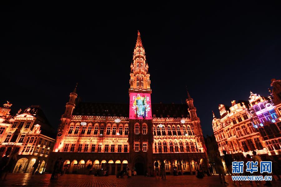 7月29日,人們在比利時布魯塞爾大廣場欣賞聲光秀。7月29日,比利時布魯塞爾大廣場舉行大型聲光秀。藝術(shù)家在市政廳等歷史建筑上投影文字和圖案,紀(jì)念這個夏天受新冠疫情影響而不能如期舉辦的文化活動。新華社記者鄭煥松攝
