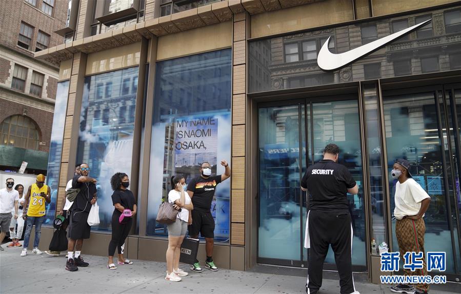 7月30日,人們?cè)诿绹?guó)紐約蘇豪商業(yè)區(qū)等待進(jìn)店購(gòu)物。美國(guó)商務(wù)部30日公布的首次預(yù)估數(shù)據(jù)顯示,受新冠疫情導(dǎo)致經(jīng)濟(jì)大面積“停擺”和消費(fèi)停滯拖累,今年第二季度美國(guó)實(shí)際國(guó)內(nèi)生產(chǎn)總值(GDP)按年率計(jì)算下滑32.9%,創(chuàng)1947年有記錄以來(lái)最大降幅。新華社記者王迎攝