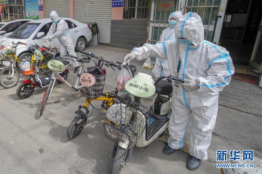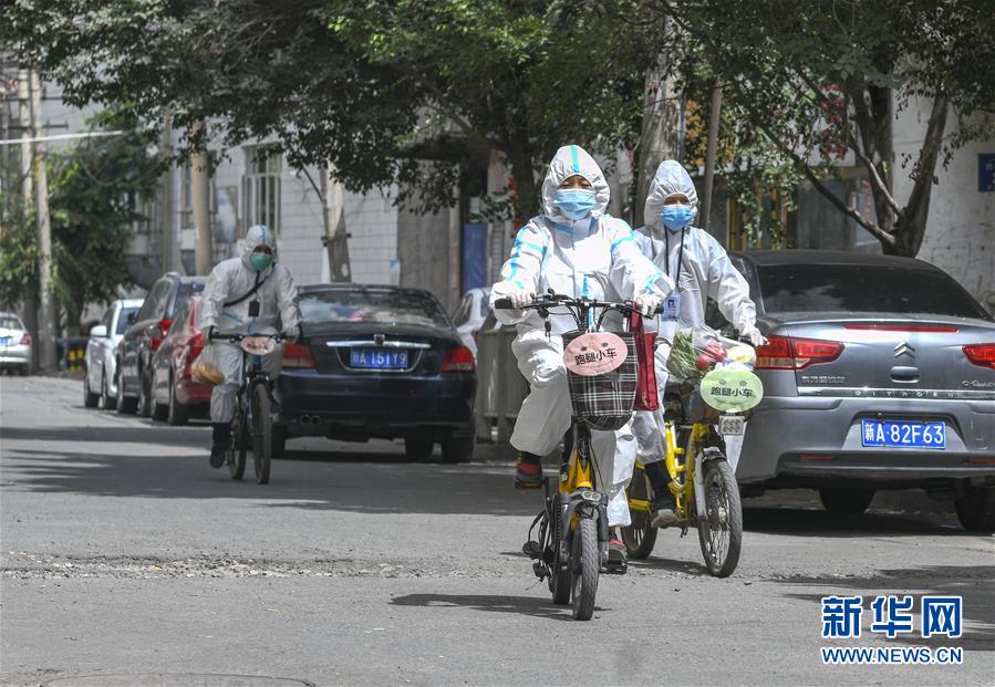 8月3日,在烏魯木齊天山區(qū)西河壩前街社區(qū),社區(qū)工作人員準(zhǔn)備騎上”跑腿小車“為居民送去生活物品。新疆烏魯木齊市天山區(qū)西河壩前街社區(qū)主次干道較多,院落分布分散。新冠肺炎疫情防控期間,社區(qū)整合現(xiàn)有資源,將暫時閑置的自行車、電動車集中起來,貼上“跑腿小車”標(biāo)識,成立便民服務(wù)隊(duì),社區(qū)工作人員通過“跑腿小車”可將居民網(wǎng)絡(luò)定制的“菜袋子”“藥盒子”快速送達(dá),給居民帶來方便。新華社記者趙戈攝