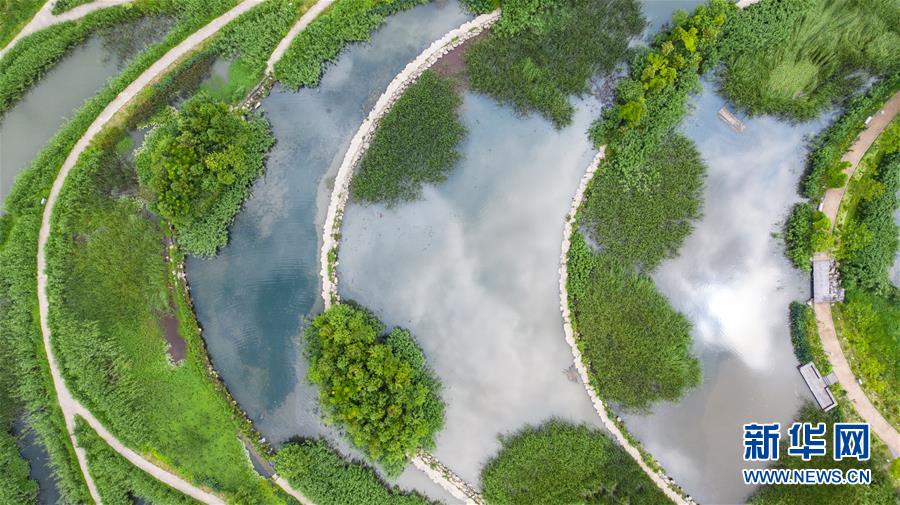 六盤水明湖國家濕地公園風(fēng)景(無人機照片,6月17日攝)。新華社記者陶亮攝