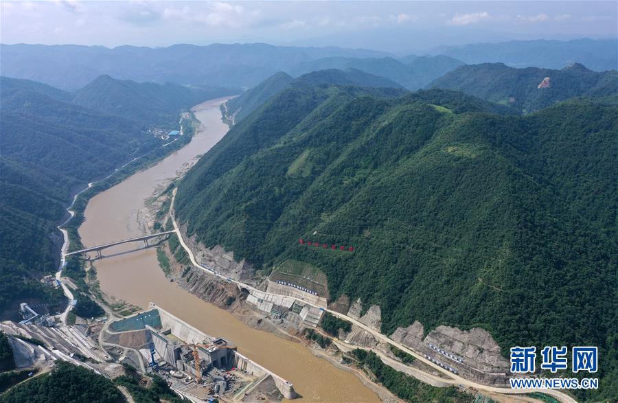 8月3日拍攝的黃金峽水利樞紐壩址全貌(無(wú)人機(jī)照片)。盛夏時(shí)節(jié),在秦嶺深處的黃金峽水利樞紐工地上,施工人員冒著酷暑加班加點(diǎn)奮戰(zhàn),以確保今年11月進(jìn)行右岸二期截流。黃金峽水利樞紐壩址位于漢江干流上游峽谷段,是引漢濟(jì)渭工程的重要組成部分。新華社記者陶明攝