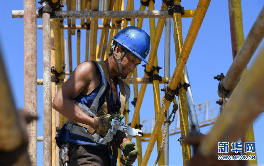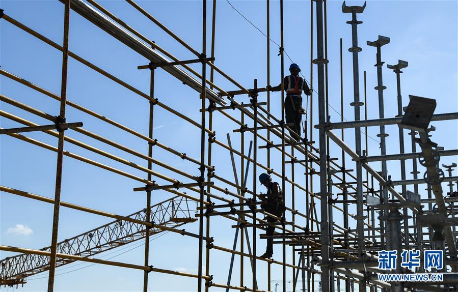 8月3日,工人在長江文創(chuàng)產(chǎn)業(yè)園項(xiàng)目工地施工。進(jìn)入8月,武漢迎來持續(xù)高溫天氣。在湖北廣電傳媒基地工程的工地上,中建三局總承包公司1500多名工人持續(xù)奮戰(zhàn),力保工程進(jìn)度。該工程是我國中部地區(qū)首個(gè)國家級廣播影視媒體基地,由湖北廣電傳媒大廈項(xiàng)目、長江文創(chuàng)產(chǎn)業(yè)園項(xiàng)目、廣電生活配套項(xiàng)目三大板塊組成,總建設(shè)規(guī)模130萬平方米。自今年3月25日獲批正式復(fù)工以來,承建方克服困難,把因疫情影響耽誤的工期趕了回來,預(yù)計(jì)將按原計(jì)劃完成建設(shè)任務(wù)。新華社記者程敏攝