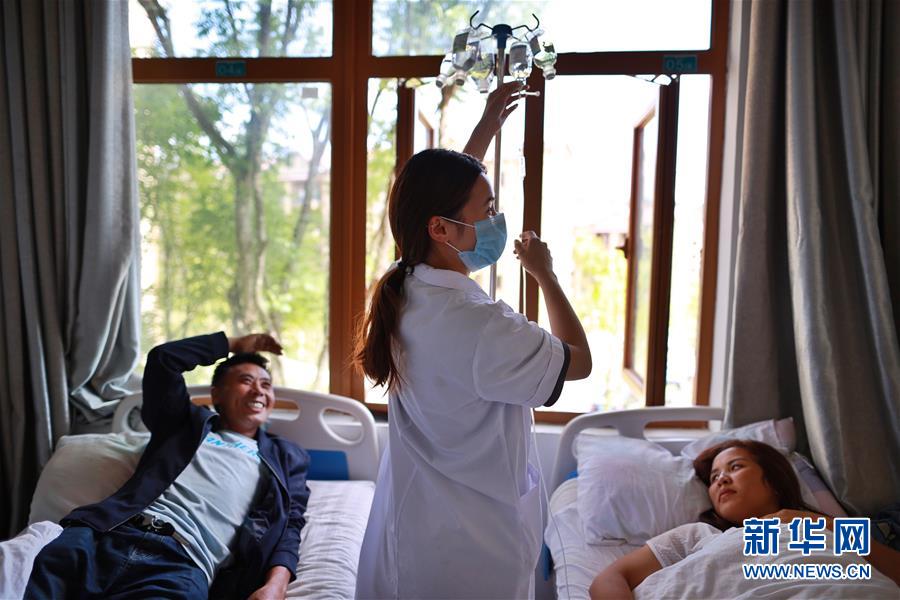 搬遷群眾在柏楊林易地扶貧搬遷安置點衛(wèi)生院內治療(8月3日攝)。貴州省畢節(jié)市七星關區(qū)柏楊林易地扶貧搬遷安置點是畢節(jié)市最大的易地扶貧搬遷安置點,總面積約1.1平方公里,從2017年開始至今,共有34個鄉(xiāng)鎮(zhèn)6372戶29001人安置到位。如今,安置點內教育、醫(yī)療、就業(yè)扶貧車間、長幼日間托養(yǎng)照料中心等設施齊全,搬遷群眾在這里過上了安居樂業(yè)的幸福生活。新華社記者劉續(xù)攝
