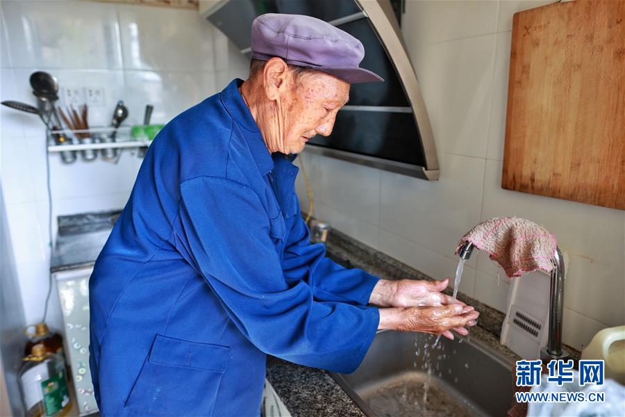 石連英在柏楊林易地扶貧搬遷安置點家中洗手(8月3日攝)。貴州省畢節(jié)市七星關區(qū)柏楊林易地扶貧搬遷安置點是畢節(jié)市最大的易地扶貧搬遷安置點,總面積約1.1平方公里,從2017年開始至今,共有34個鄉(xiāng)鎮(zhèn)6372戶29001人安置到位。如今,安置點內教育、醫(yī)療、就業(yè)扶貧車間、長幼日間托養(yǎng)照料中心等設施齊全,搬遷群眾在這里過上了安居樂業(yè)的幸福生活。新華社記者劉續(xù)攝