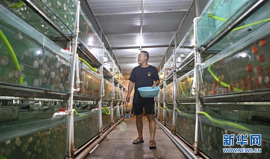 近年來,在遼寧省鞍山市寧遠街道張忠堡村,許多村民投身觀賞魚養(yǎng)殖業(yè),當?shù)夭扇 皡f(xié)會+合作社+農(nóng)戶”模式,利用鞍山三臺子觀賞魚交易中心平臺,將養(yǎng)殖的觀賞魚銷往東北三省以及河北、內蒙古、天津等地。小小觀賞魚,如今已成為村民重要的致富手段。新華社記者姚劍鋒攝