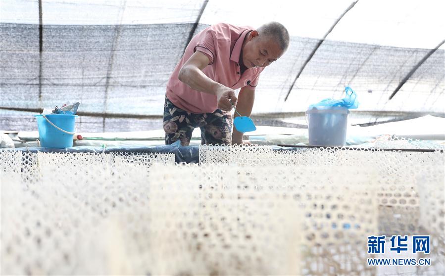 這是張忠堡村村民李國鵬養(yǎng)殖池里的觀賞魚育種筐(8月4日攝)。新華社記者姚劍鋒攝