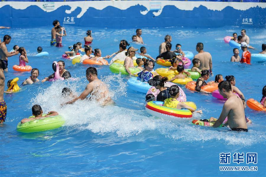 8月5日,重慶涪陵紅酒小鎮(zhèn)水上樂(lè)園內(nèi),市民在水中嬉戲。當(dāng)日,重慶市氣象臺(tái)再次發(fā)布“高溫橙色預(yù)警信號(hào)”,重慶大部分海拔400米以下地區(qū)日最高氣溫將升至37℃以上,局地可達(dá)40℃以上。許多重慶市民涌進(jìn)當(dāng)?shù)氐乃蠘?lè)園和泳池,在水中享受夏季的清涼。新華社記者劉潺攝