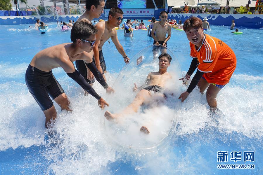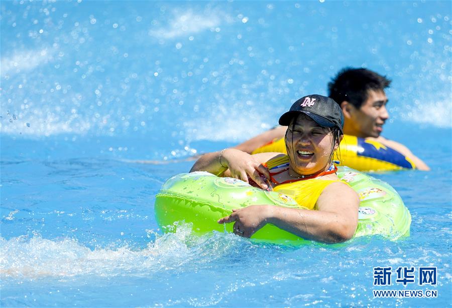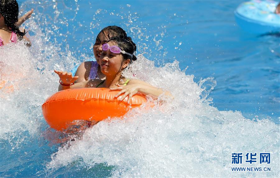 8月5日,重慶涪陵紅酒小鎮(zhèn)水上樂園內(nèi),市民在體驗(yàn)水上游樂項(xiàng)目。當(dāng)日,重慶市氣象臺再次發(fā)布“高溫橙色預(yù)警信號”,重慶大部分海拔400米以下地區(qū)日最高氣溫將升至37℃以上,局地可達(dá)40℃以上。許多重慶市民涌進(jìn)當(dāng)?shù)氐乃蠘穲@和泳池,在水中享受夏季的清涼。新華社記者劉潺攝