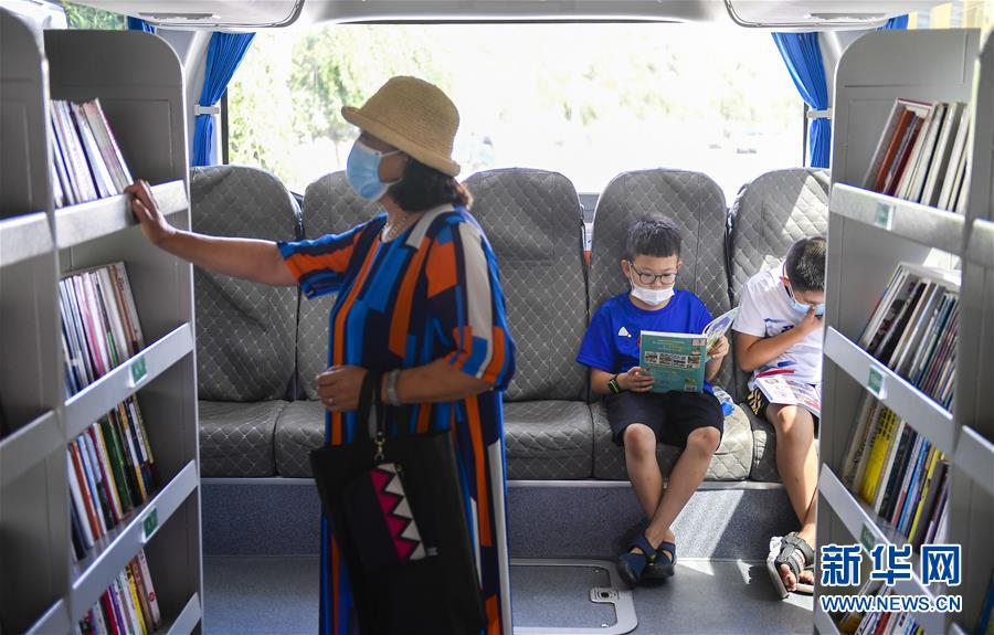 8月5日,長春市民在“流動圖書館”里看書。三千冊圖書,一輛大巴車,穿梭在城市的街頭巷尾。在吉林長春,長春市圖書館利用流動圖書車,定期在市內(nèi)15個固定服務點間巡回流動,為市民提供便捷的圖書借閱服務。新華社記者許暢攝