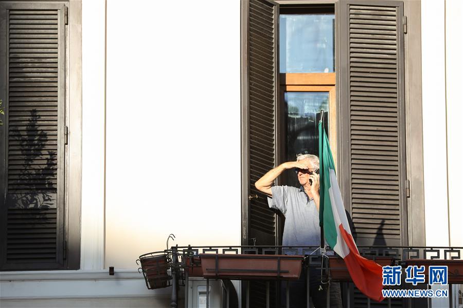 8月4日,在意大利首都羅馬,一名男子在陽(yáng)臺(tái)打電話(huà)。受新冠疫情影響,今年夏天羅馬的歷史中心區(qū)游客比往年明顯減少。新華社記者程婷婷攝