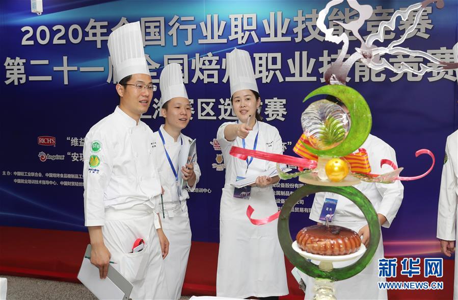 8月5日,評(píng)委在作品展示區(qū)為選手的作品打分。當(dāng)日,第二十一屆全國(guó)焙烤職業(yè)技能競(jìng)賽上海賽區(qū)選拔賽,在上海市現(xiàn)代食品職業(yè)技能培訓(xùn)中心舉行,來自上海、江蘇、浙江等地的近60名焙烤行業(yè)技師,在藝術(shù)面包、傳統(tǒng)糕點(diǎn)、糖藝和藝術(shù)巧克力等項(xiàng)目中進(jìn)行比拼,在充滿焙烤香氣的賽場(chǎng)上展現(xiàn)技藝。新華社記者方喆攝