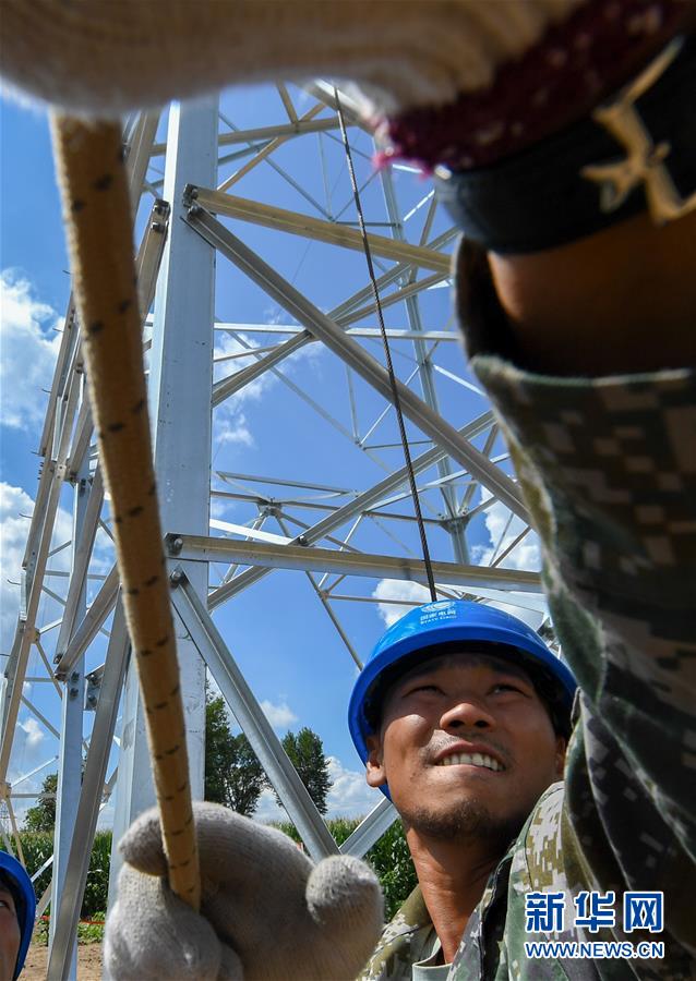 8月6日,送電工在吉林省長(zhǎng)春市城郊的一處輸電鐵塔上施工作業(yè)。吉林省長(zhǎng)春市連續(xù)多日出現(xiàn)高溫天氣,國(guó)網(wǎng)長(zhǎng)春供電公司輸電運(yùn)檢中心的送電工們每天清晨開始作業(yè),不畏烈日“烤”驗(yàn),堅(jiān)守工作崗位,確保工程按計(jì)劃完成。新華社記者張楠攝