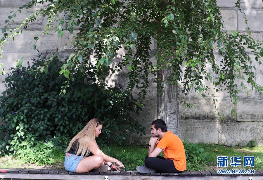 炎炎夏日里,水邊、林間、花叢……都能看到人們消暑納涼的身影。人們?cè)谙硎芟娜湛鞓?lè)的同時(shí),也能體會(huì)到絲絲清涼。這是7月31日,一對(duì)情侶在法國(guó)巴黎塞納河畔避暑納涼。新華社記者高靜攝