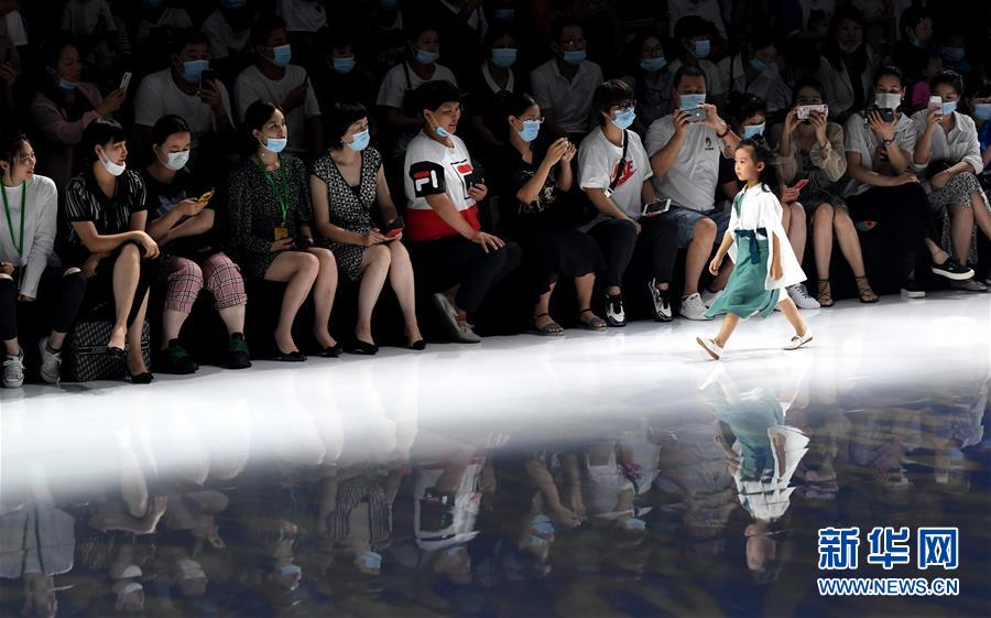 8月7日,小模特在T臺上展示童裝。當日,2020中國(河南)國際大學生時裝周舉行童裝設(shè)計專場展示。8月5日至7日,2020中國(河南)國際大學生時裝周在河南省新密市豫發(fā)密蘭小鎮(zhèn)舉行。新華社記者朱祥攝
