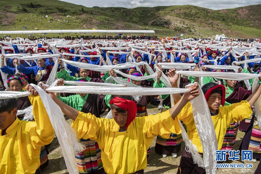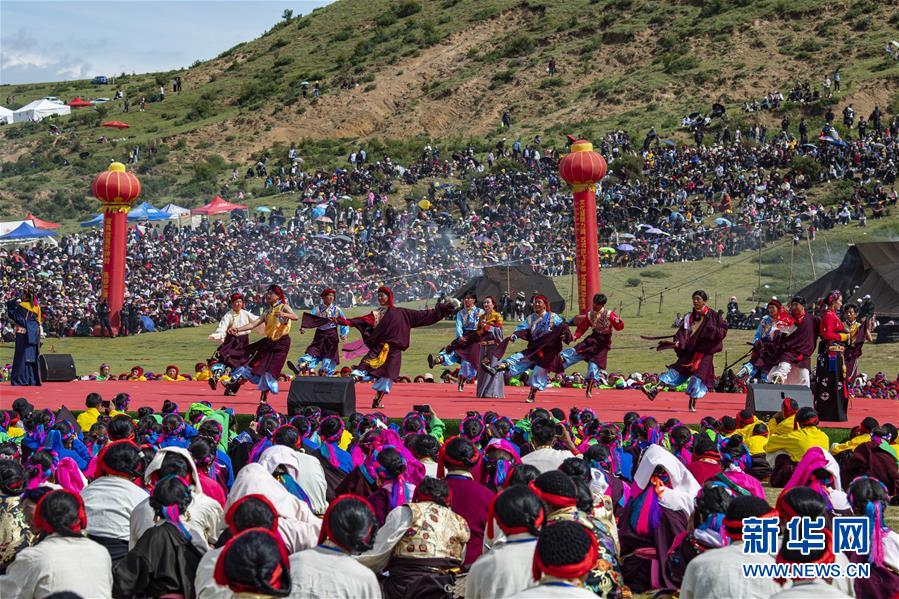 8月7日,在西藏首屆弦子舞展演現(xiàn)場(chǎng),演出人員在表演弦子舞。當(dāng)日,西藏首屆弦子舞展演在昌都市芒康縣舉行。眾多演員同臺(tái)獻(xiàn)藝,表演國(guó)家級(jí)非物質(zhì)文化遺產(chǎn)弦子舞,吸引西藏各地的群眾前來(lái)觀看。新華社記者孫非攝