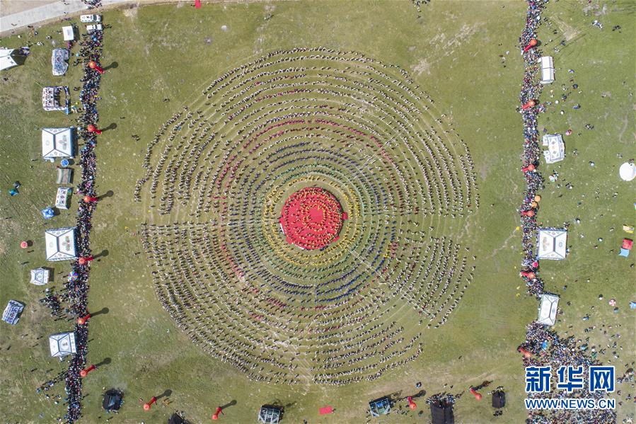 西藏首屆弦子舞展演現(xiàn)場(chǎng)(8月7日攝,無(wú)人機(jī)照片)。當(dāng)日,西藏首屆弦子舞展演在昌都市芒康縣舉行。眾多演員同臺(tái)獻(xiàn)藝,表演國(guó)家級(jí)非物質(zhì)文化遺產(chǎn)弦子舞,吸引西藏各地的群眾前來(lái)觀看。新華社記者孫非攝
